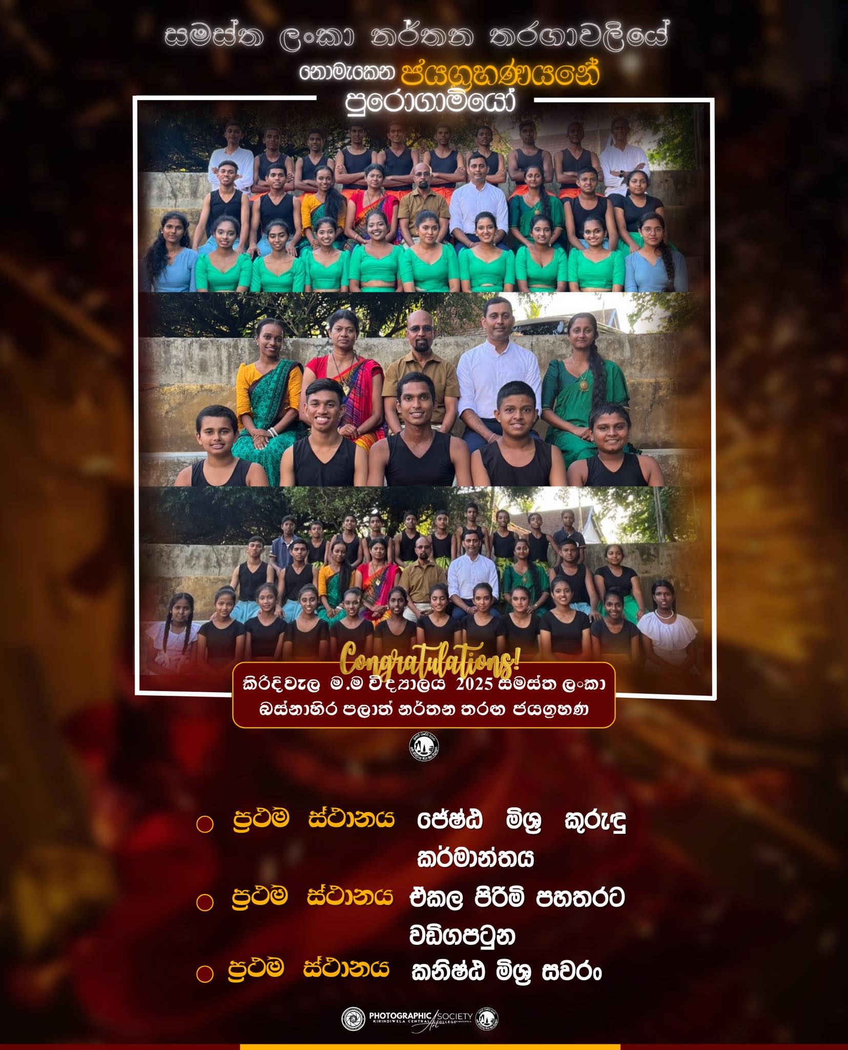 With an outstanding victory claiming in the 2025 Western Province Dance Competition, Kiridiwela Central College extends warm wishes to the dancing team for their victory in the regional dance competition!